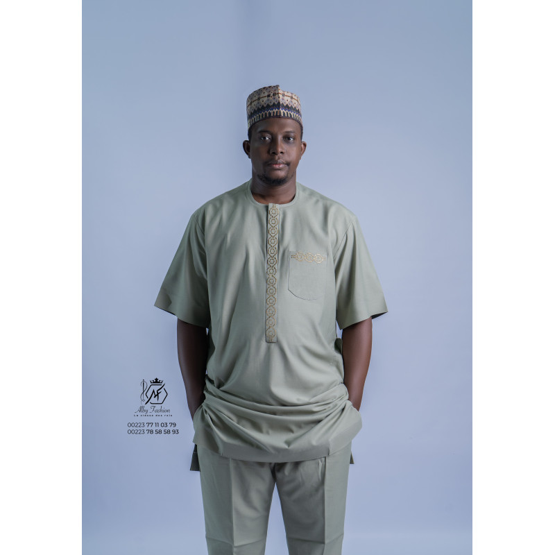 Découvrez cet élégant ensemble traditionnel pour homme couleur vert olive, une tenue qui allie sobriété, confort et raffinement africain. Conçu dans un tissu de qualité supérieure, cet ensemble offre une coupe moderne et un style intemporel idéal pour toutes les occasions.