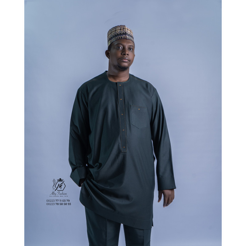 Optez pour un style raffiné et intemporel avec cet ensemble traditionnel pour homme couleur vert foncé. Conçu dans un tissu de qualité supérieure, cet habit allie sobriété, confort et élégance, parfait pour les hommes qui recherchent un style distingué.